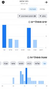 קבוצה א: יום חמישי הוא היום הפופולארי. שימו לב לשעות החמות, כי אוטוטו תראו נתונים מקבוצה אחרת בתחום הקריירה ותוכלו להשוות.