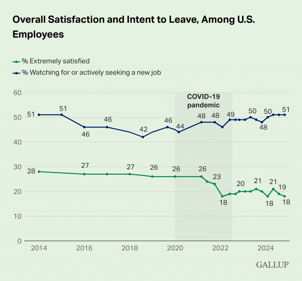 בעבר, יותר עובדים דיווחו על שביעות רצון גבוהה, אולם מגמת הירידה בשנים האחרונות מצביעה על תסכול הולך וגובר. תחושת החיבור שמרבית העובדים מחפשים אינה מתקיימת, והפער הרגשי גדל.