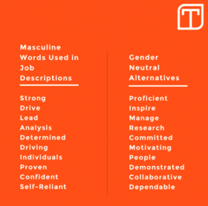 נקודה חשובה נוספת היא השימוש במילים וביטויים שלא מעודדים נשים להגיש מועמדות.