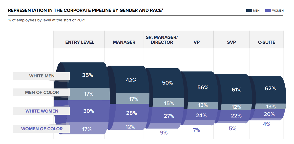 הסיבה שאני כותב זאת היא כי ממחקר מקיף של מקינזי ו LeanIn עולה כשגם כאשר קיים כבר שוויון בגיוס מגדרי, מה שקורה בפועל הוא שכמות הגברים המתקדמים לרמות הנהלה בכירה עולה פי 3 על מספר הנשים.