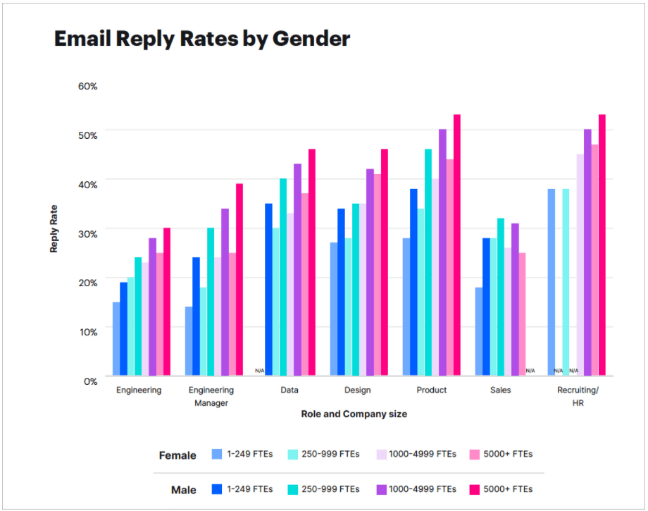 נתון חשוב נוסף שמראה את הפער העצום בין גברים לנשים הוא אחוזי החזרה לפניות שהם מקבלים ממגייסים.