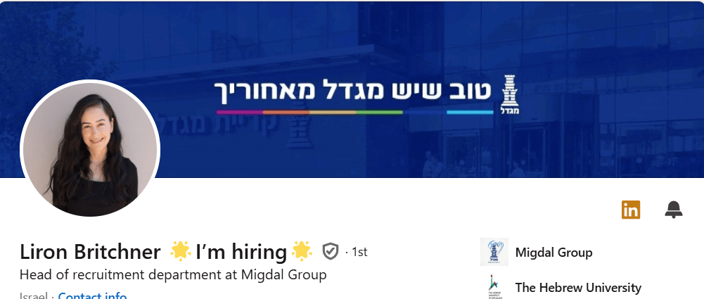 זה כמו שיש לכם שלט חוצות עבור מותג המעסיק שלכם בראש הפרופיל שלכם.