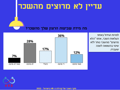 שימו לב לתמרור האזהרה מהסקר. 28% מהאנשים בתחום לא מרוצים מהשכר. אלה עובדות ועובדים מוכשרים עם פוטנציאל להתחיל לחפש עבודה ממש ברגעים אלה. עדיין לא מאוחר לנסות לשמר אותן ואותם.